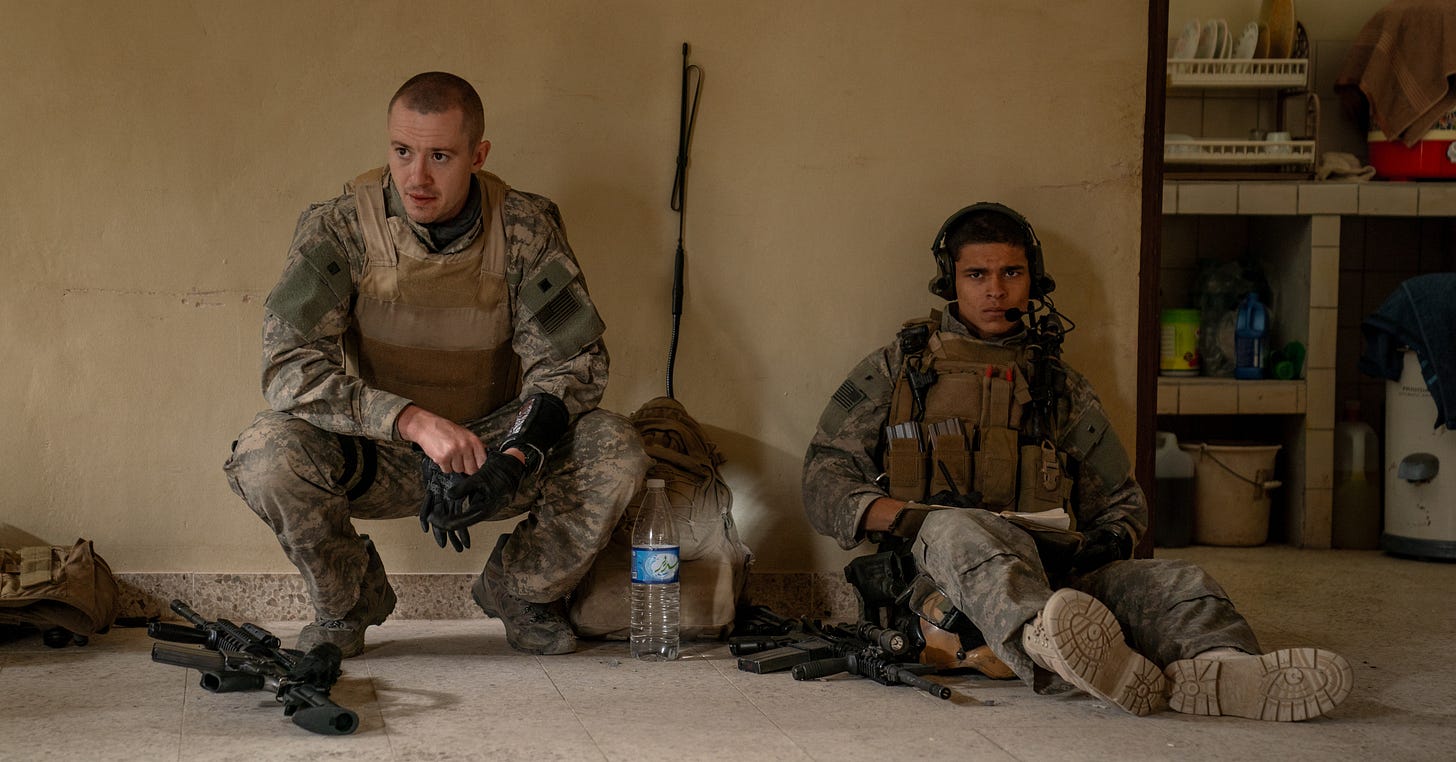 But while the tension is relentless, so is the lack of narrative. This isn’t a story so much as a reconstruction. There’s no dramatic arc, no hero’s journey. The film operates like a brutal memory — jagged, incomplete, unfiltered. That creative decision is both its power and its limitation. Where “Civil War” felt like it was trying to say everything, “Warfare” refuses to say anything. No politics, no commentary, just “Here’s what happened. Make of it what you will.”